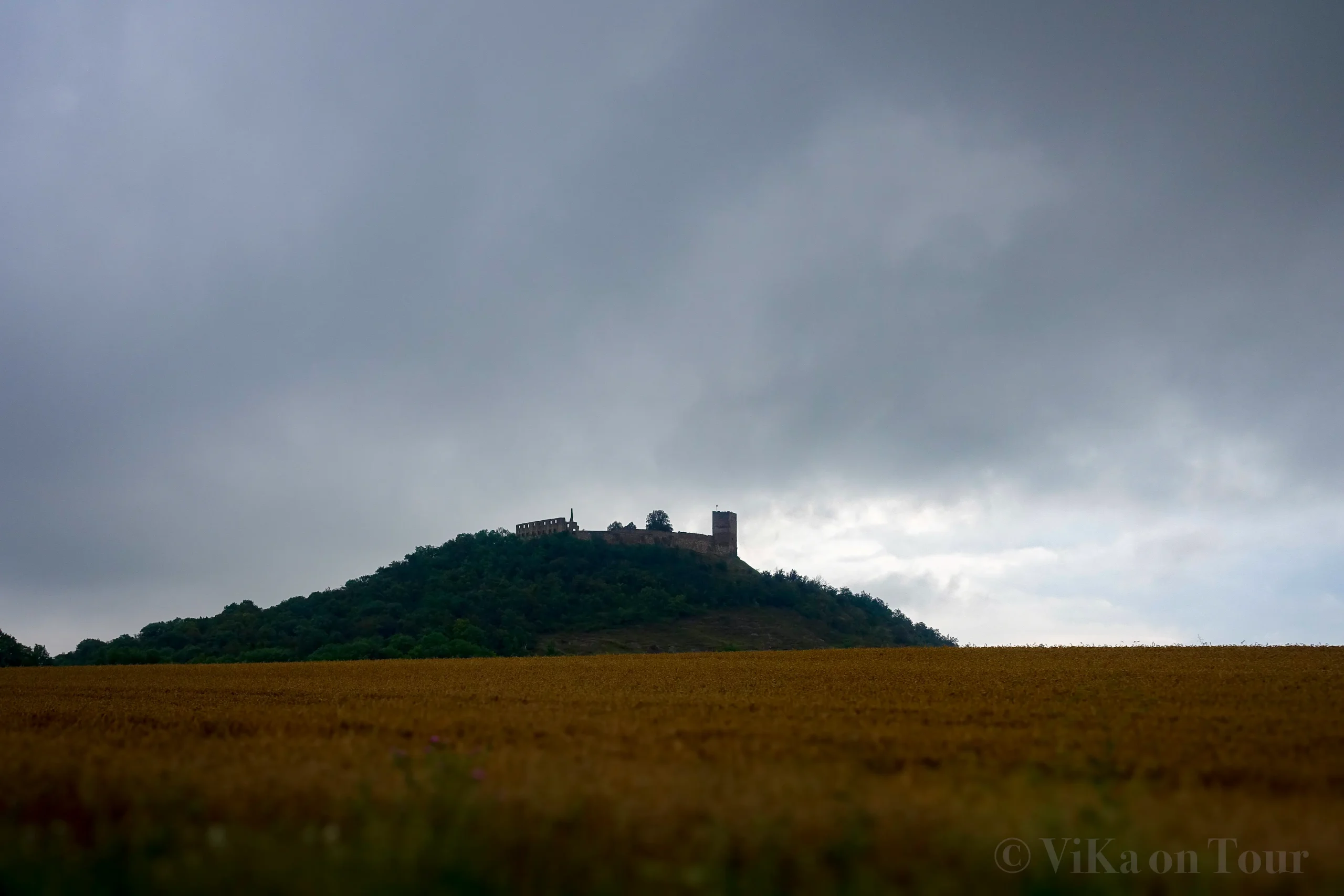 Unser erstes Etappenziel war am Starttag Karlsruhe zu erreichen, was angesichts der späten Abfahrtzeit in weite Ferne gerückt war. Spontan entschieden wir uns für die erste Übernachtung für einen Campingplatz bei den „Drei Gleichen“ bei Erfurt – das waren „nur“ 4 Stunden Fahrzeit und dennoch kamen wir trotz Pause erst gegen 20 Uhr an. Das Wetter spielte auch nicht so recht mit. Unsere Hoffnung die „Drei Gleichen“ bei schönem Wetter nochmal am nächsten Tag zu sehen, endete dann so: