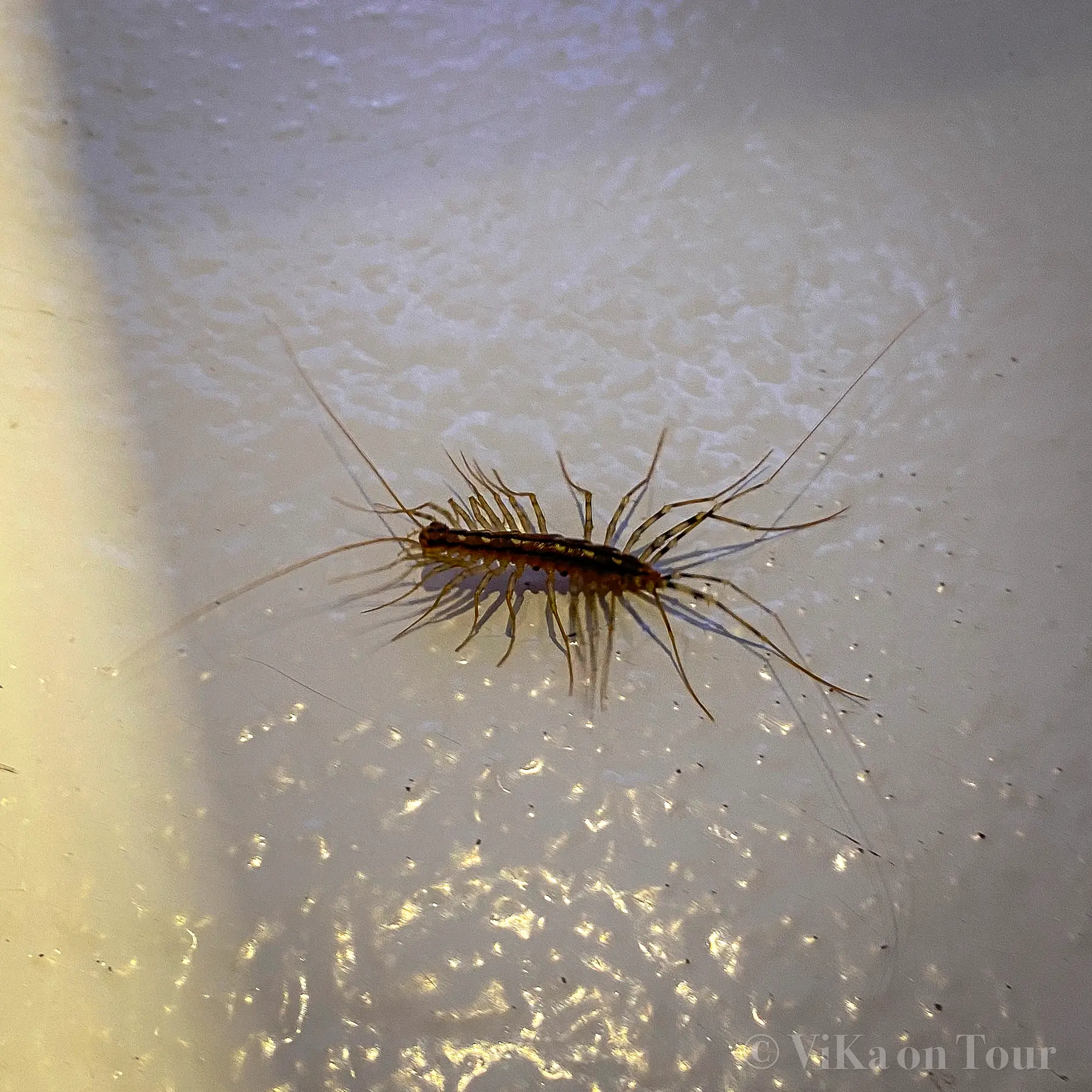 Und was sahen meine trüben Augen mit einmal über den Boden huschen? Ich dachte zunächst an eine Kakerlake bei der Hitze, aber nach einer kurzen Recherche via Google konnten wir dieses Urgestüm als Spinnenläufer identifizieren. Zu nah konnte man dem Tier tatsächlich nicht kommen, denn dann bäumte es sich auf und kam auf einen zugerannt – echt spuky ☠️