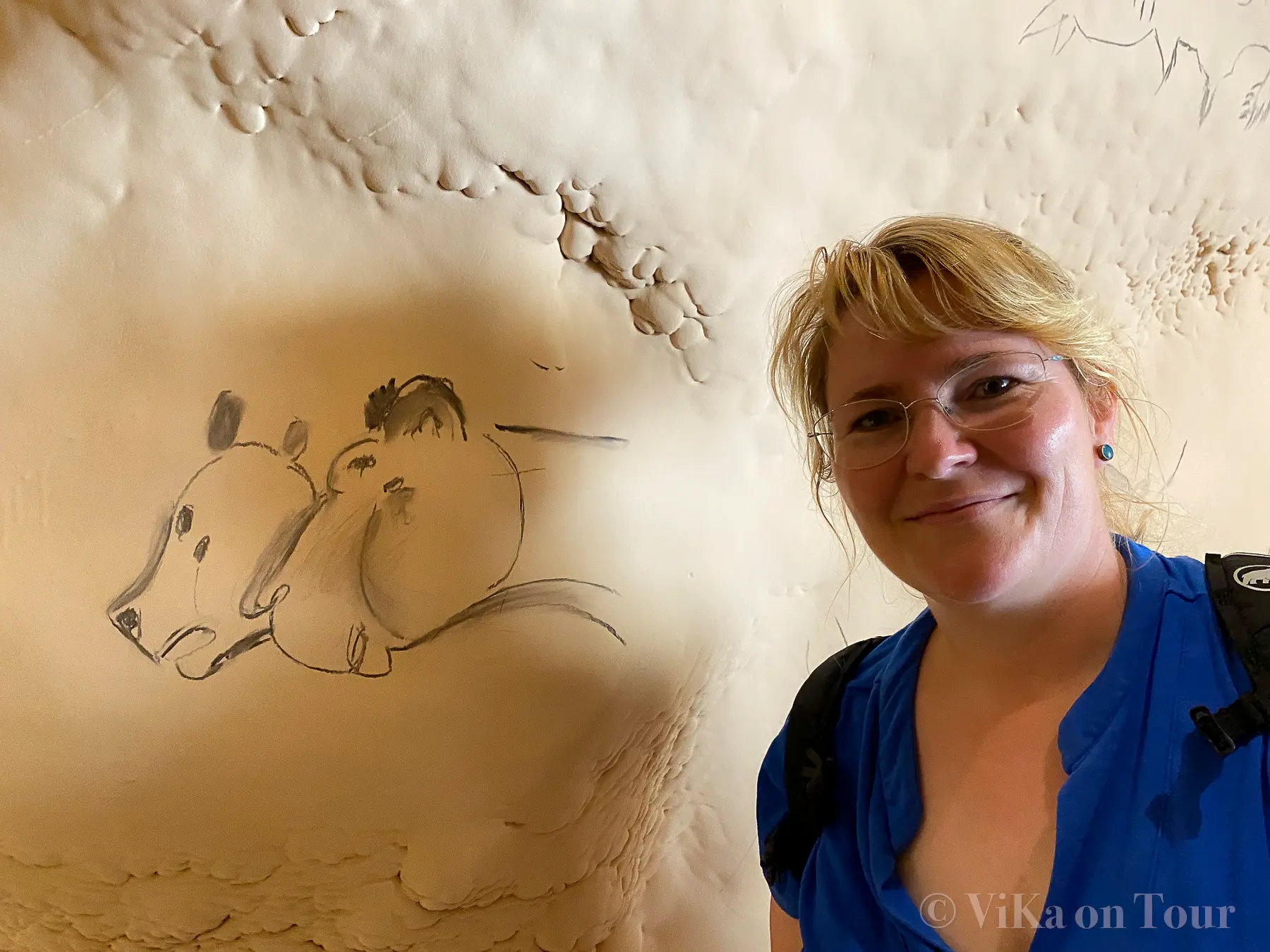 Von hier aus sind wir dann am nächsten Morgen zur Grotte Chauvet 2 gefahren. Diese Höhle ist 36.000 Jahre alt und eine authentische Nachbildung der ursprünglichen (echten) Grotte, damit sie und ihre Höhlenmalerei für die Öffentlichkeit zugänglich sind.