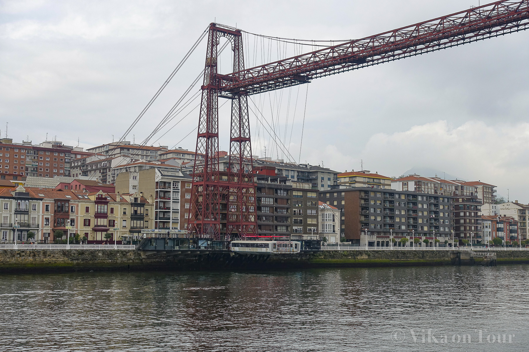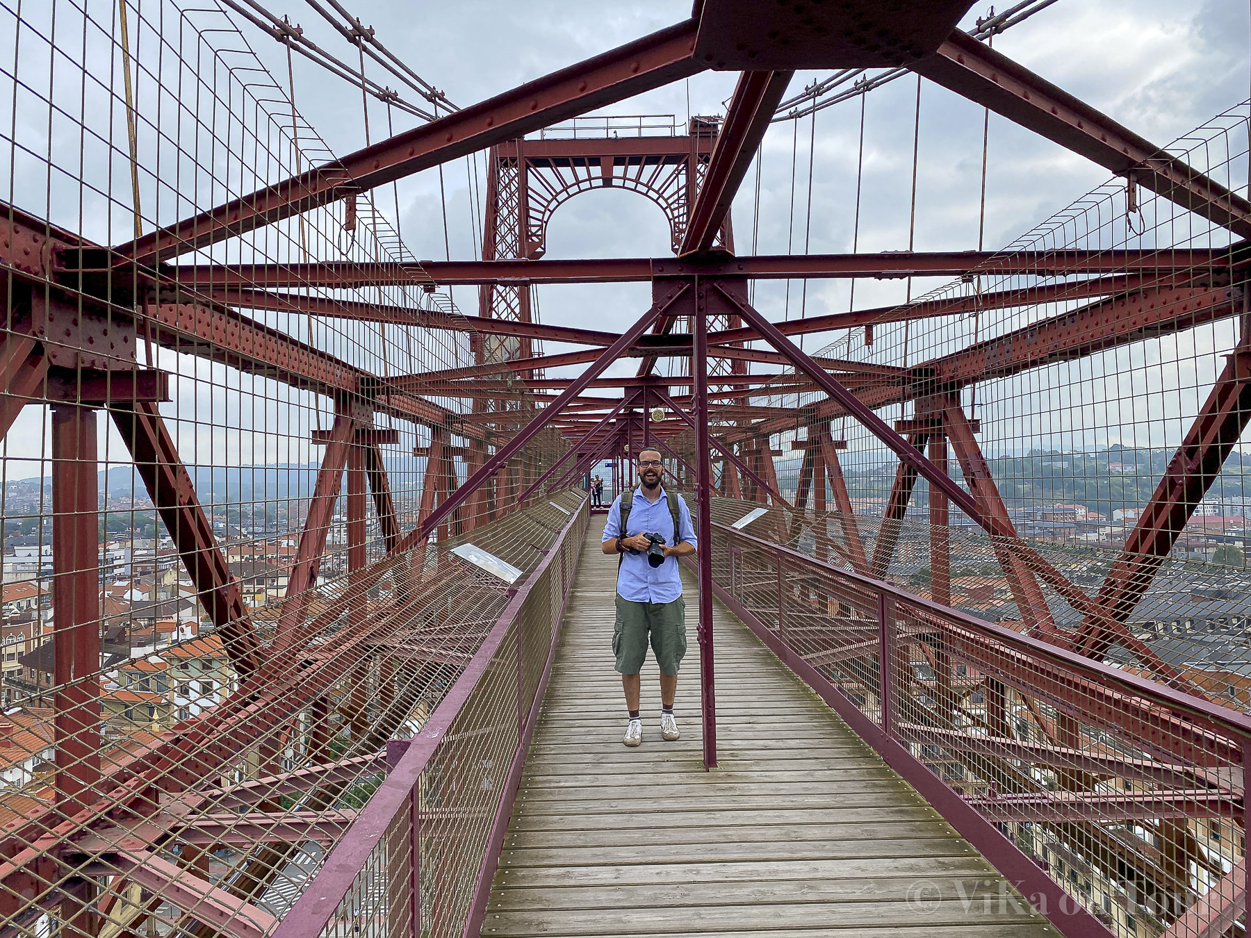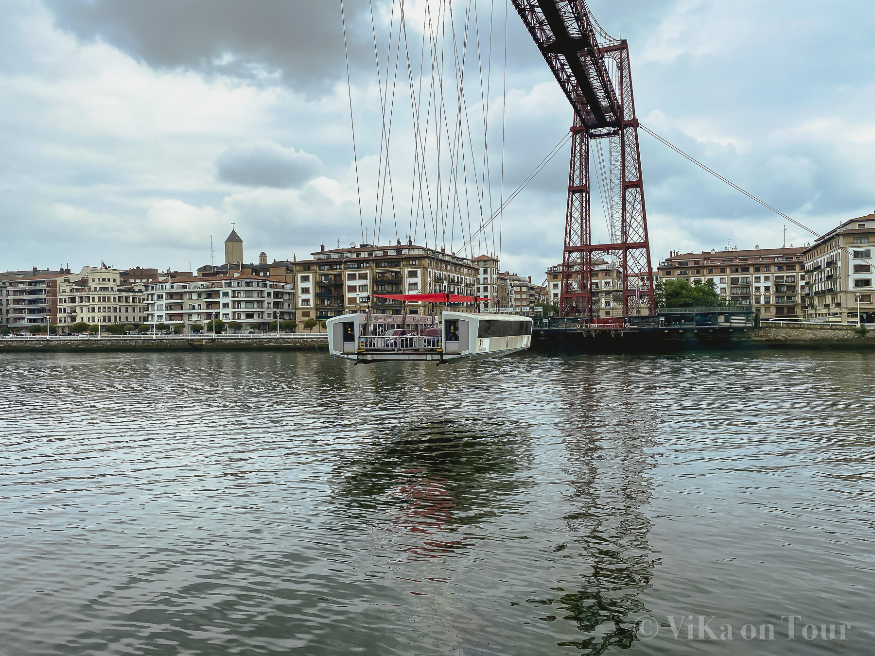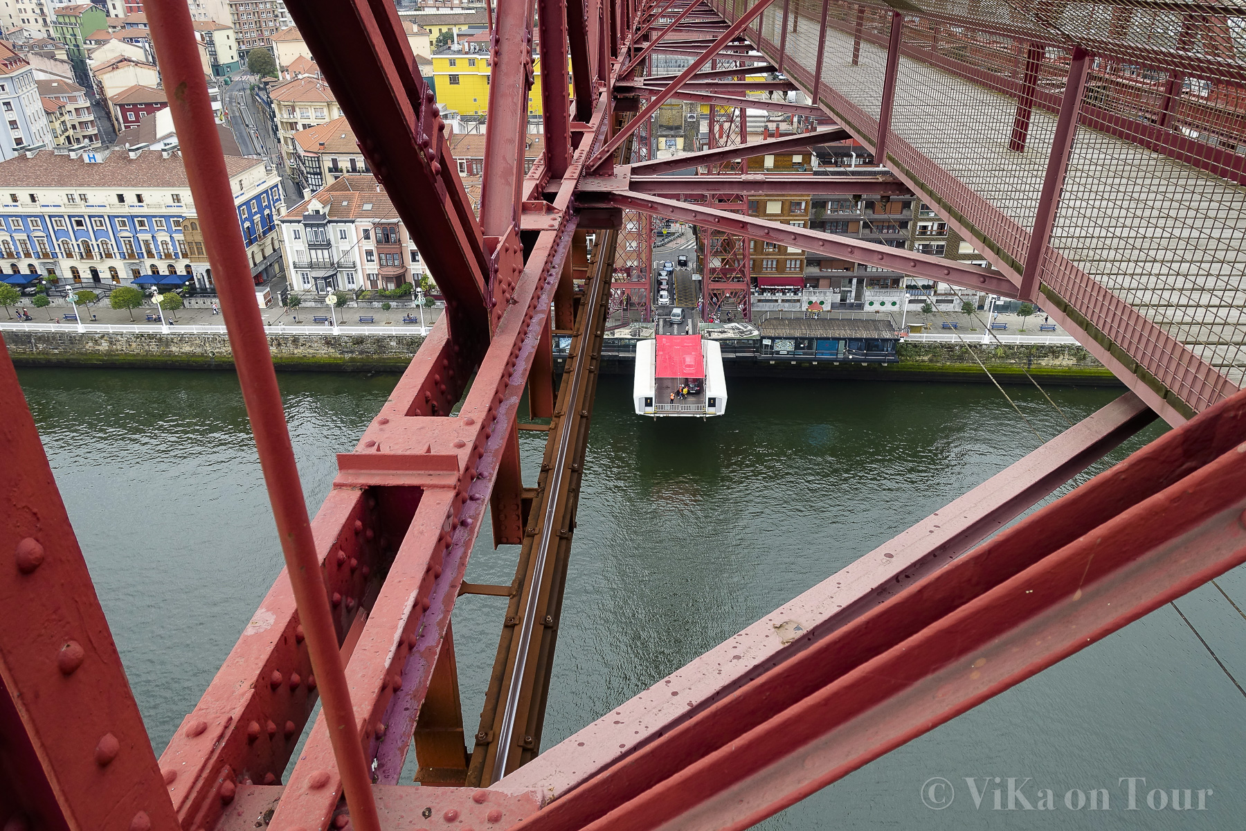 Nach einer spannenden Metrofahrt erreichten wir also Bilbao. Wir gingen zuerst zur Puente de Vizcaya (Biskaya-Brücke), welche die älteste Schwebefähre der Welt und auch heute noch in Betrieb ist (Eröffnung war 1893). Sie zählt zum UNESCO Weltkulturerbe. Man fährt zunächst mit einem kleinen Fahrstuhl die eine Seite hinauf, darf dann direkt auf dem Gerüst rüberlaufen, dann geht es mit einem weiteren Fahrstuhl hinunter und am Ende fährt man dann mit der Schwebefähre wieder zurück zum Ausgangspunkt. Oben von der Brücke aus hat man einen fantastischen Blick auf die zwei Stadthälften – absolut empfehlenswert! Das Einzige, was wirklich im ersten Moment etwas beängstigend wirkt, ist das Wackeln, wenn die Schwebefähre sich unter einem hin- und herbewegt 😅