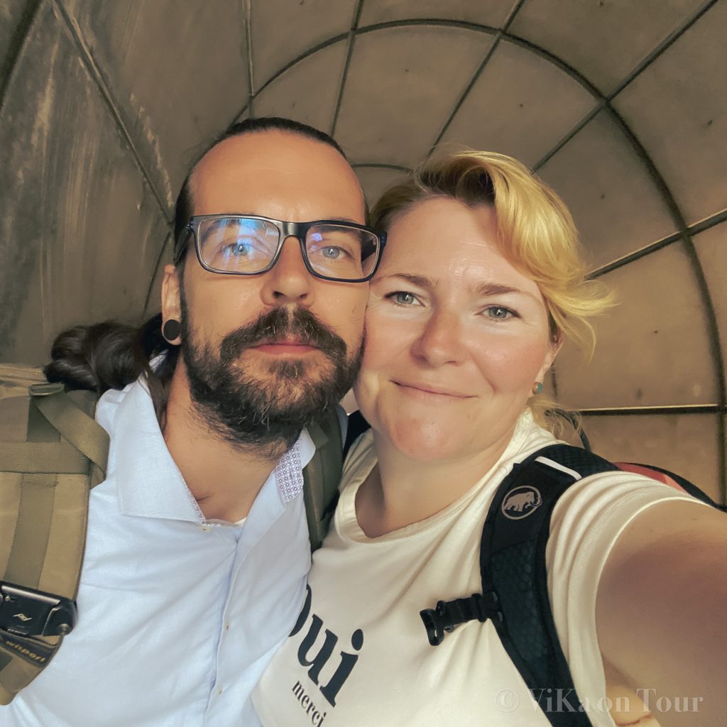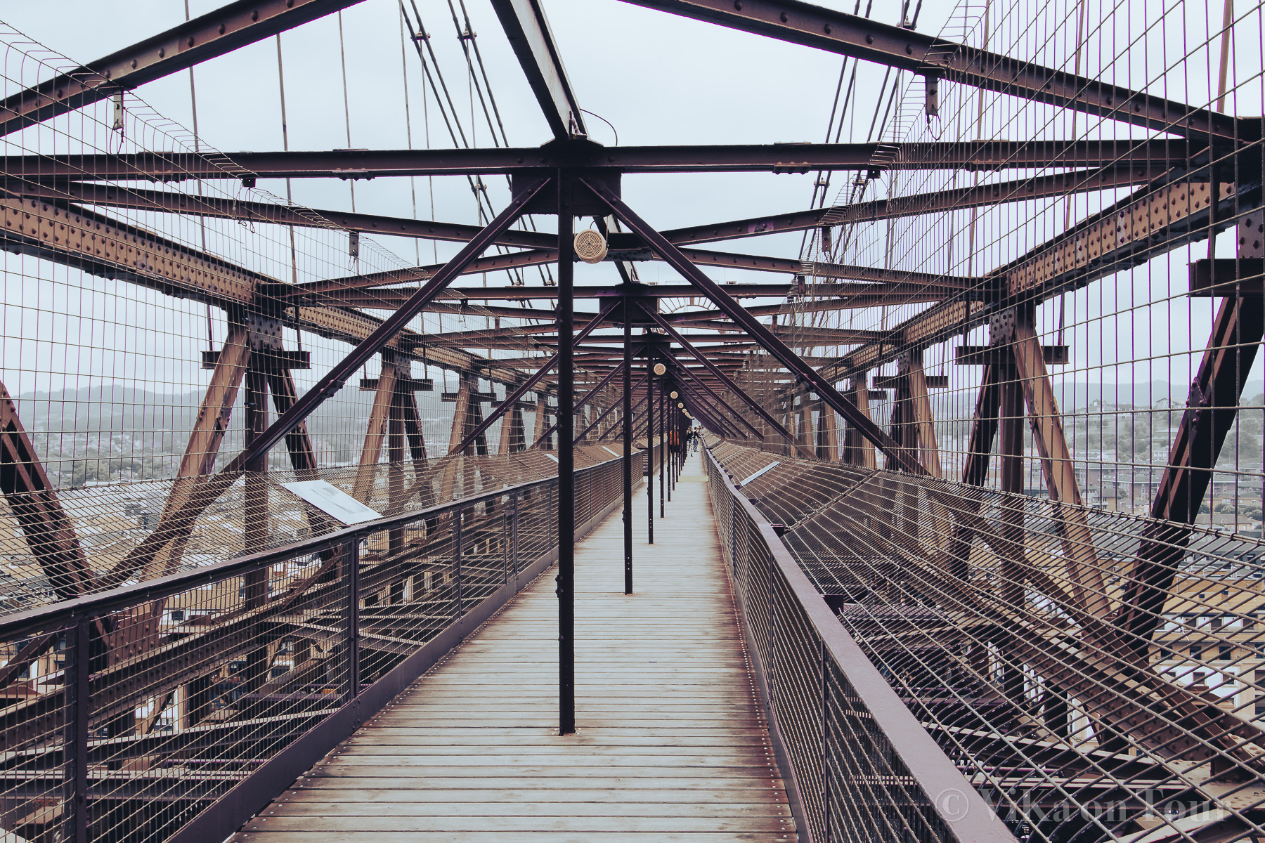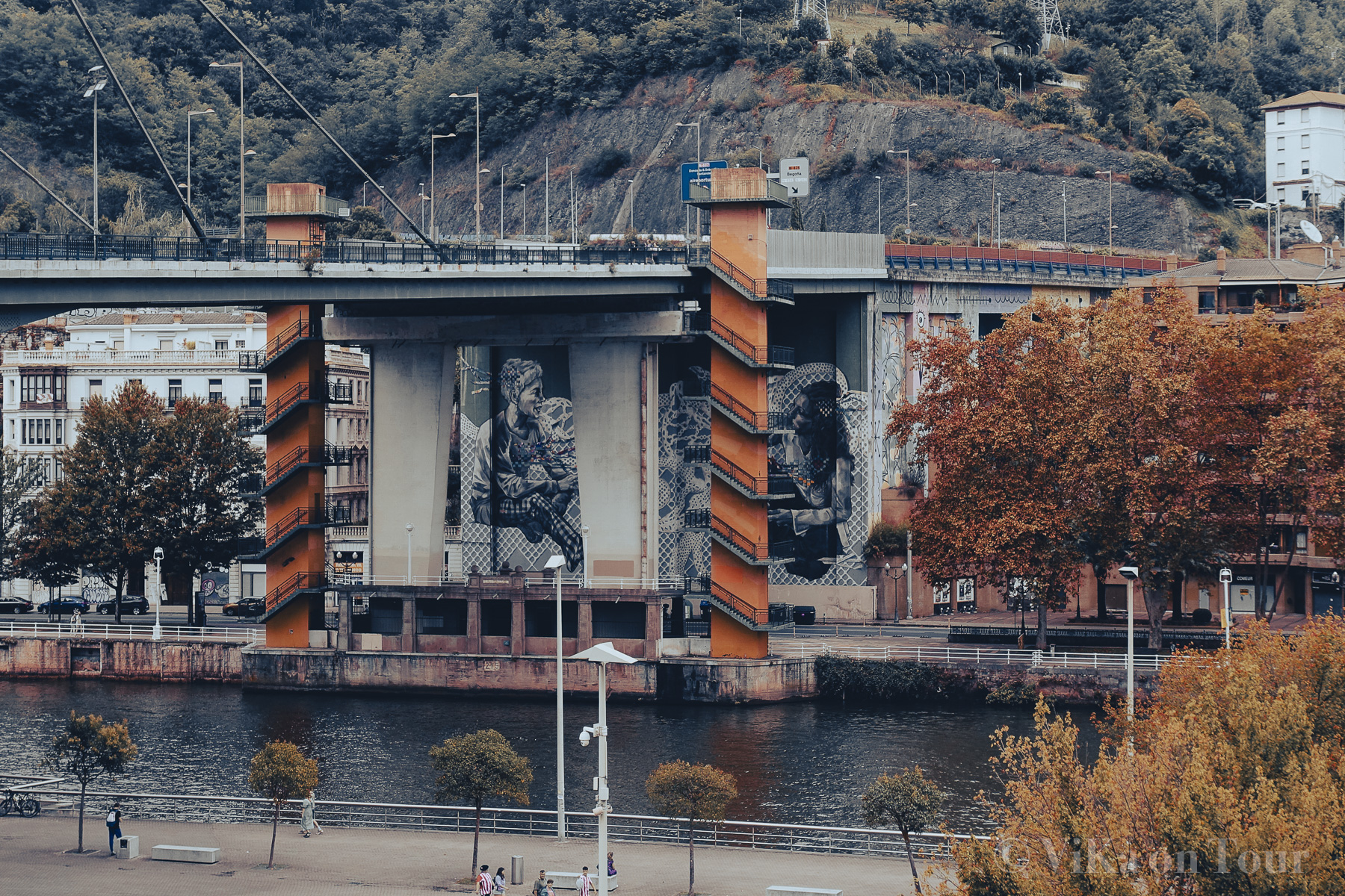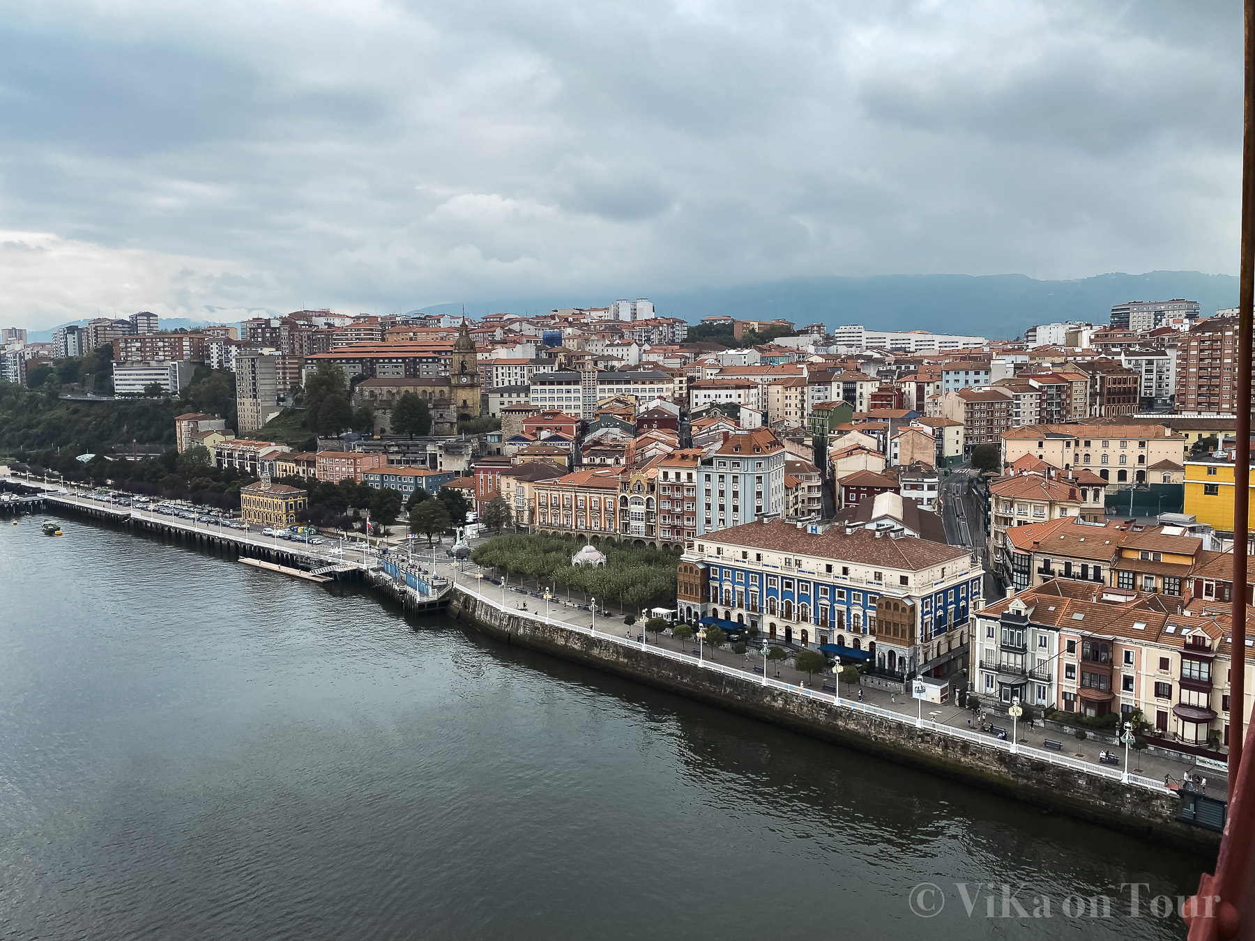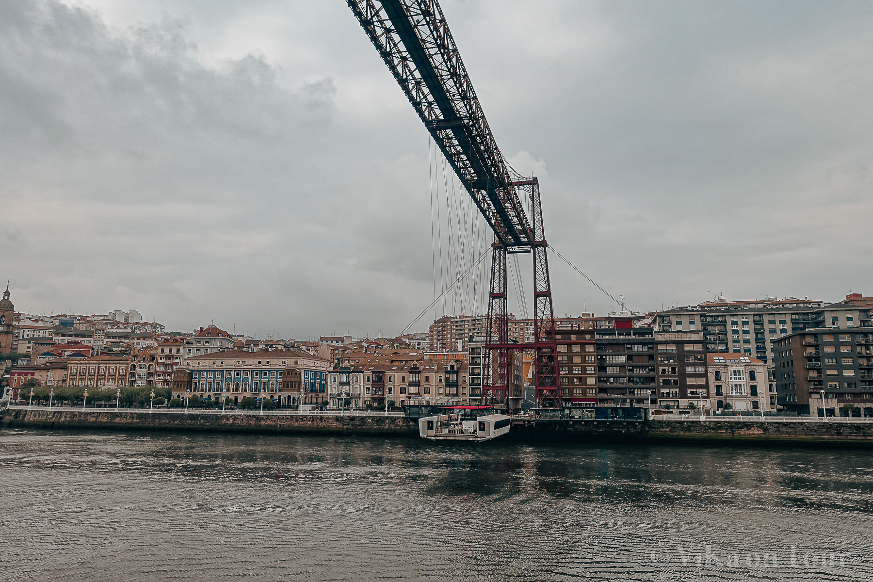 Nach einer spannenden Metrofahrt erreichten wir also Bilbao. Wir gingen zuerst zur Puente de Vizcaya (Biskaya-Brücke), welche die älteste Schwebefähre der Welt und auch heute noch in Betrieb ist (Eröffnung war 1893). Sie zählt zum UNESCO Weltkulturerbe. Man fährt zunächst mit einem kleinen Fahrstuhl die eine Seite hinauf, darf dann direkt auf dem Gerüst rüberlaufen, dann geht es mit einem weiteren Fahrstuhl hinunter und am Ende fährt man dann mit der Schwebefähre wieder zurück zum Ausgangspunkt. Oben von der Brücke aus hat man einen fantastischen Blick auf die zwei Stadthälften – absolut empfehlenswert! Das Einzige, was wirklich im ersten Moment etwas beängstigend wirkt, ist das Wackeln, wenn die Schwebefähre sich unter einem hin- und herbewegt 😅