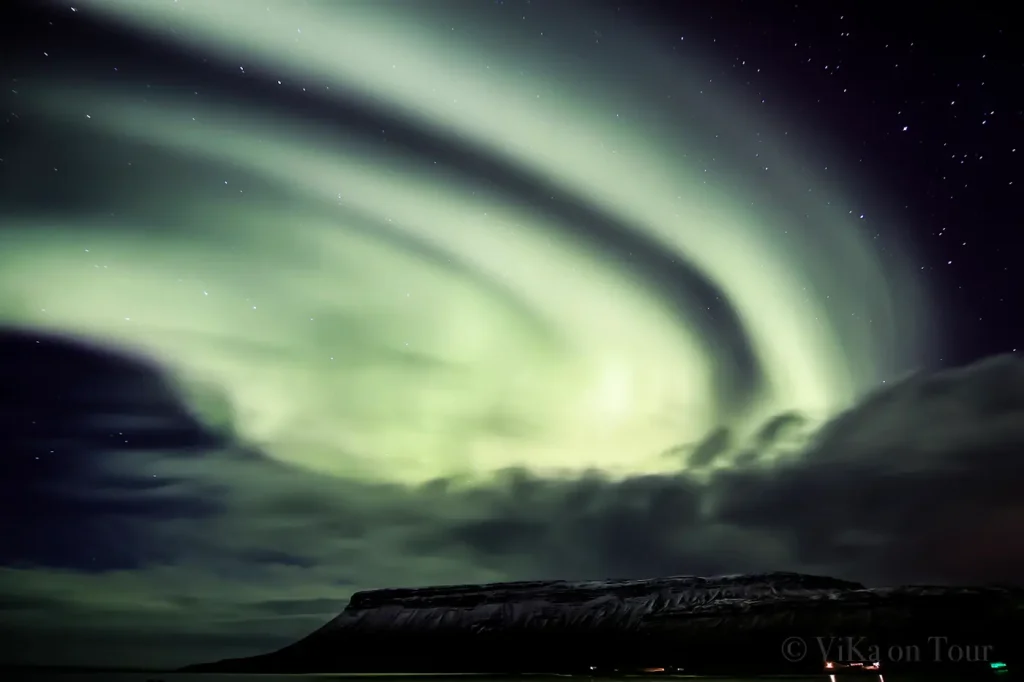 UNDDDDDD als wir mitten im Nichts standen, Auto aus, Licht aus, erkannten wir mit einmal, dass die Wolke recht grünlich erschien und auf einem Probefoto war es dann ganz deutlich zu sehen … WIR HABEN SO EBEN UNSER ERSTES POLARLICHT GESEHEN 😍😍😍😍 Somit stand fest: die isländischen Götter hießen uns willkommen. Es war so irre schön…Diese Lichtstreifen tanzten vor sich hin, wurden heller und dunkler und änderten alle paar Sekunden ihre Form 💙Wirklich einmalig!